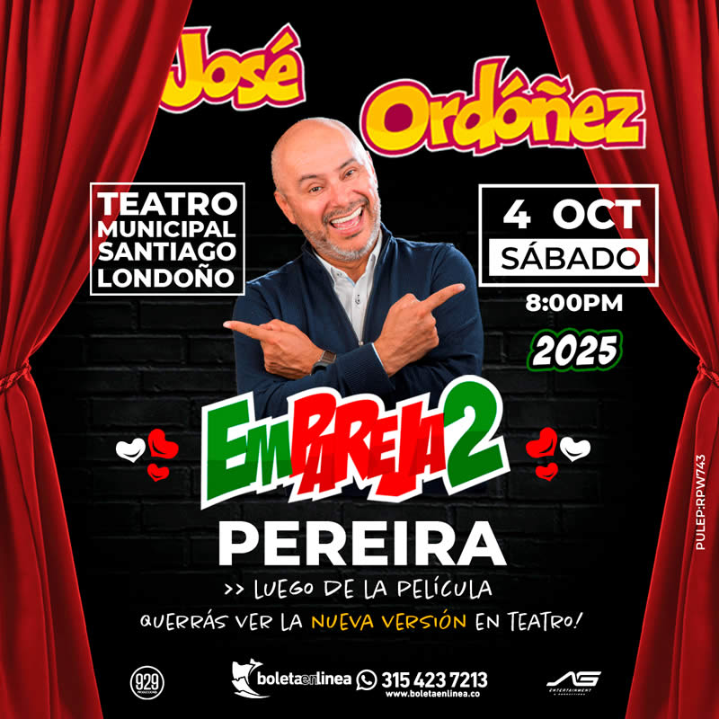 “Emparejados” no es solo un espectáculo de comedia, es una experiencia que une a las parejas a través de la risa. José Ordóñez, con su estilo único y observaciones agudas, presentará en Pereira un show que convierte las situaciones cotidianas de la convivencia en momentos inolvidables de humor y reflexión.